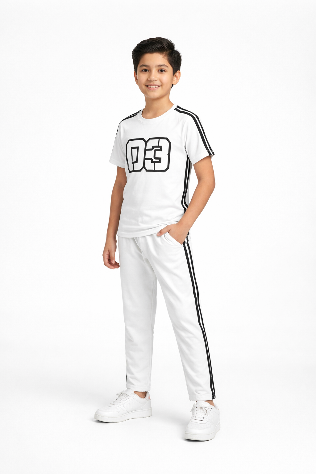 WHITE BLACK STRIPS WITH TROUSER UNISEX-SUMMER-TRACKSUIT